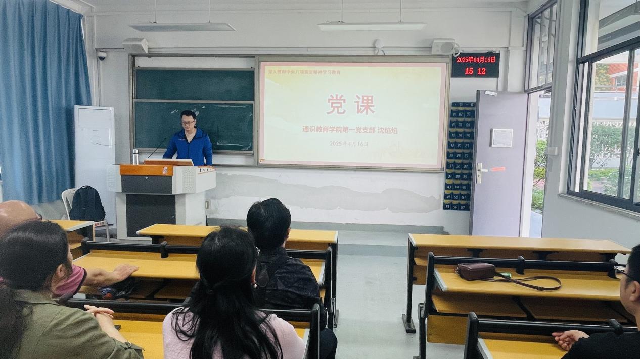 2025年4月16日下午,数学教研室党支部在8号楼110教室召开专题党课学习会,围绕“深化作风建设,严守中央八项规定精神”主题开展集中学习。支部全体党员参会,会议由支部书记沈焰焰同志主持并主讲。 党课中,沈焰焰同志结合党的二十大关于全面从严治党的重要部署,系统解读了中央八项规定的核心要义、历史意义与实践要求。通过典型案例剖析,重点强调了高校教师党员在学术科研、教学管理、师德师风等领域需严守纪律红线,坚决反对“四风”问题。针对教研室工作实际,提出三点要求:一是筑牢思想防线,将八项规定精神融入日常教学科研;二是规范经费使用,杜绝学术活动中的铺张浪费;三是强化责任担当,以优良作风推动学科高质量发展。 与会党员结合自身经历展开热烈讨论,青年教师代表表示,将以案为鉴,严守科研诚信、廉洁从教。