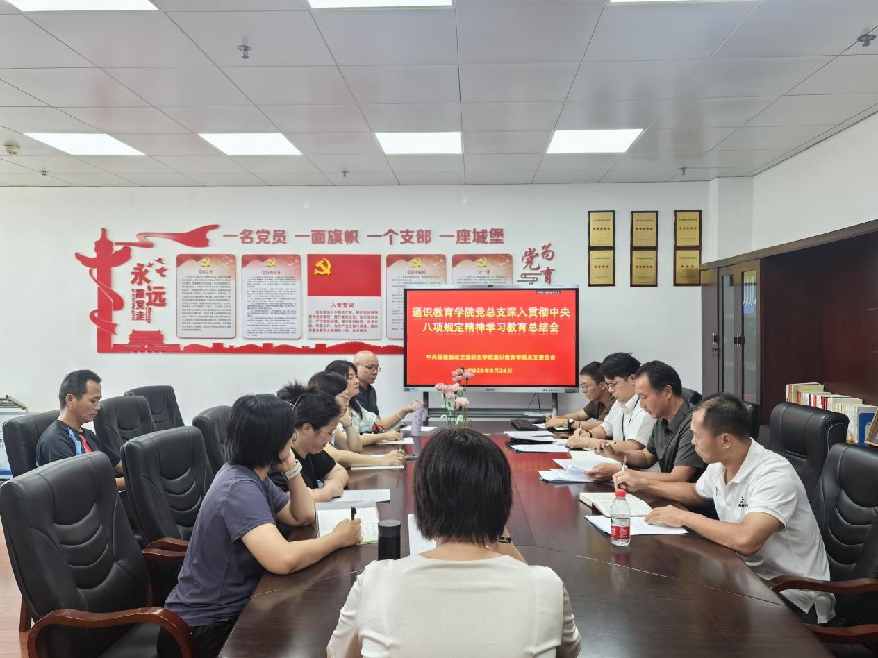 2025年9月24日,福建船政交通职业学院通识教育学院党总支在福道园鉴知楼1007会议室召开深入贯彻中央八项规定精神学习教育总结会。会议由党总支书记陈火城主持,党总支理论学习中心组(扩大)成员及教师代表参加会议。