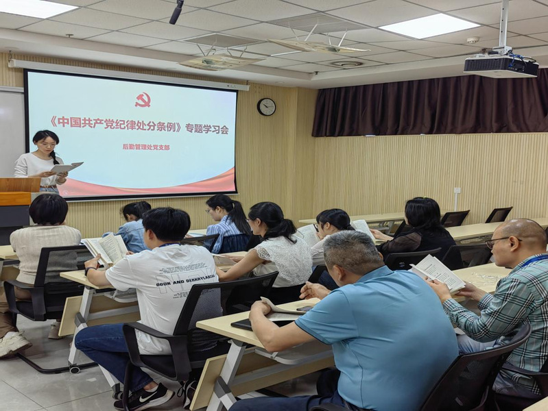 2024年5月22日,进一步加强党的纪律建设,提高全体党员干部遵规守纪意识,后勤管理处党支部组织开展学习会议,专题学习新修订的《中国共产党纪律处分条例》。后勤管理处党支部书记祝可为主持会议,支部党员积极参会。