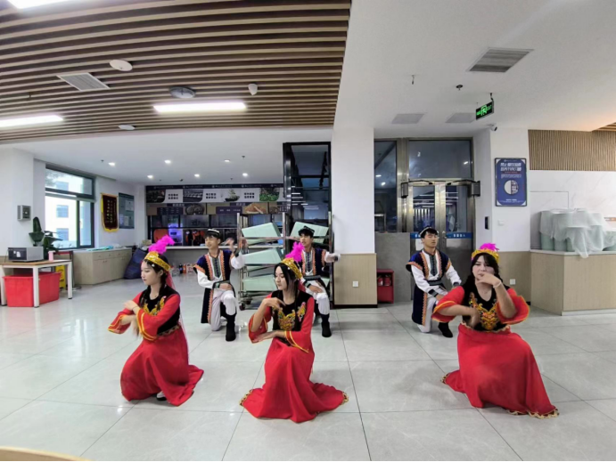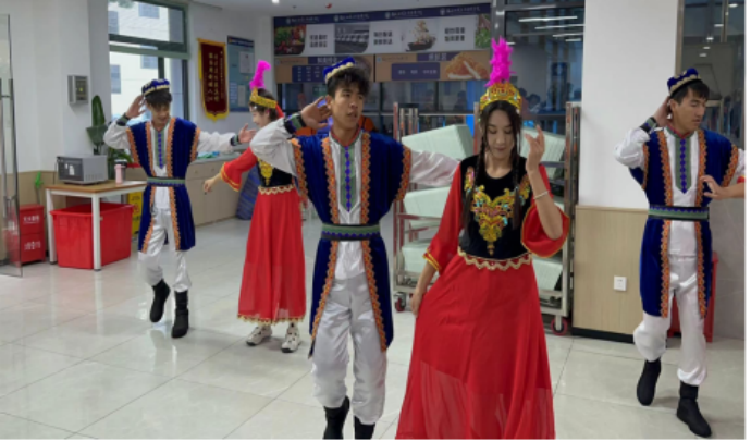 新疆籍学生身穿民族服饰,一首热情奔放的维吾尔族舞蹈《花园》拉开了活动的序幕。优美的舞姿充分展现了民族特色文化,与台下师生的互动更是将全场的气氛带至高潮。