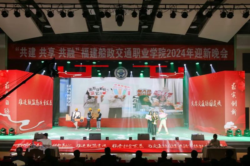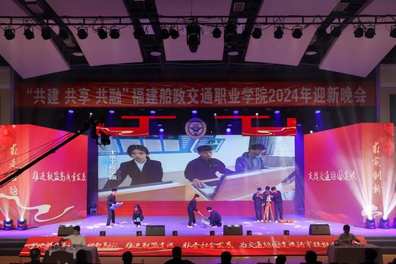 12月27日晚,我院在福道园文体中心,举办以“共建 共享 共融”为主题的2024年迎新晚会。学院党委书记陈宜大,党委副书记、院长陈锦辉,京津冀沪+交通职业教育集团联盟的各位领导、嘉宾及我院各职能部门、二级学院负责人,师生代表等近八百人观看了演出。