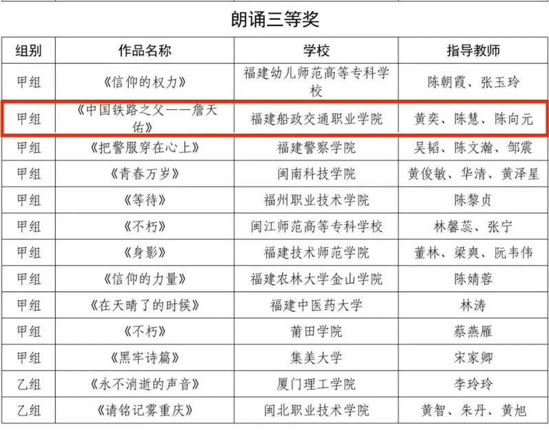 朗诵三等奖
