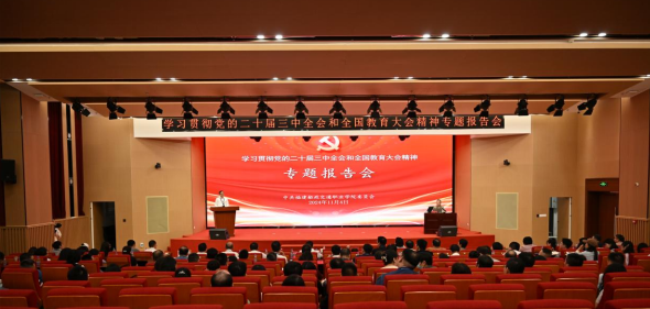 为深入学习贯彻习近平新时代中国特色社会主义思想和党的二十届三中全会精神,贯彻落实全国教育大会精神,深刻领悟习近平总书记来闽考察重要讲话精神,准确把握现代职业教育体系建设改革新任务新要求新动向,11月4日下午,福建省政协教科卫体委员会副主任,原福建省教育工委委员、省教育厅党组成员、副厅长(正厅长级)刘健教授应邀到我院作题为《学习贯彻党的二十届三中全会精神 构建职普融通产教融合职教新体系》专题辅导讲座。全体副科级及以上干部、教研室主任参加学习。报告会由学院党委书记陈宜大主持。