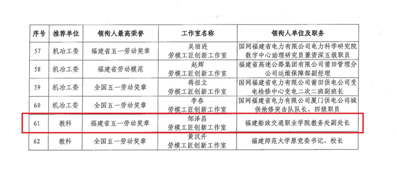 日前,福建省总工会公布了《关于确认福建省劳模工匠创新工作室的通知》,我院邹泽昌副教授领衔的市级劳模和工匠人才创新工作室成功获批“福建省劳模工匠创新工作室”,这是我院首个福建省劳模工匠创新工作室。