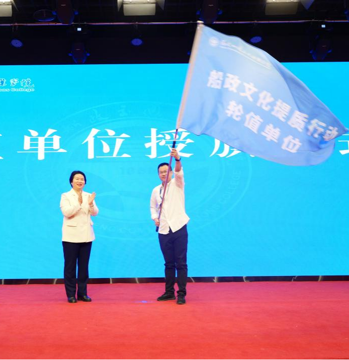 授旗仪式上,经济与管理学院接过轮值单位旗帜,郑重承诺将凝聚师生力量,推动活动长效开展。