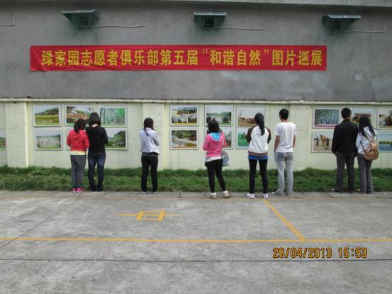 2013年4月26日,交通经济系团总支与福建省绿家园志愿者俱乐部共同举办了福建省绿家园志愿者俱乐部第五届“和谐自然”图片巡展--省交通学院站。