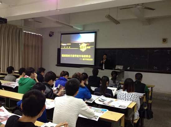 2014年4月23日在福建船政交通职业学院经管大楼307教室为2014届毕业生举办一场专场招聘会,由盛丰物流股份有限公司前来对交通经济系2014届各专业应届毕业生进行招聘。