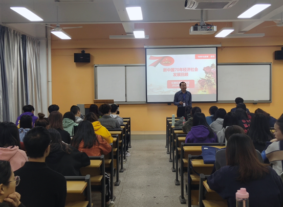 福建船政交通职业学院交通经济系关于新中国70年经济社会发展回顾讲座于2019年12月1日下午16:00在经管楼208成功召开。本次讲座由陈宏主任主讲, 18级报关全体同学准时到场。
