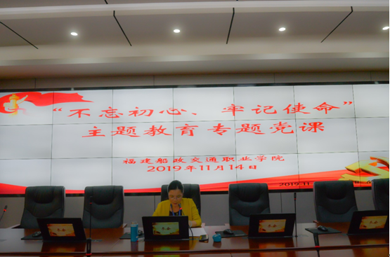 根据学院主题教育工作安排,11月14日下午,学院举行“不忘初心、牢记使命”主题教育专题党课。院党委委员、副院长陈艳红为管理系、经济系,院办、人事处、学生处、团委全体教师党员以及部分入党积极讲专题党课,此次党课由管理系主任房曰荣主持。