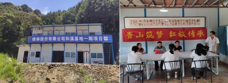 图5 和溪基地一期的项目部 图6 烽琳公司技术员介绍项目情况