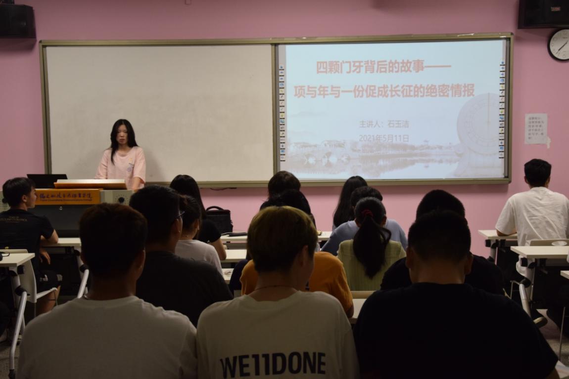为庆祝中国共产党成立100周年,深入学习贯彻习近平新时代中国特色社会主义思想,推进我院党史学习教育各项工作扎实开展,营造“学党史、强信念、跟党走”的浓厚氛围,经济与管理学院于5月11日组织开展“学党史 强信念 跟党走”党史学习教育宣讲会。党史学习教育宣讲团经管学生石玉洁作宣讲分享。