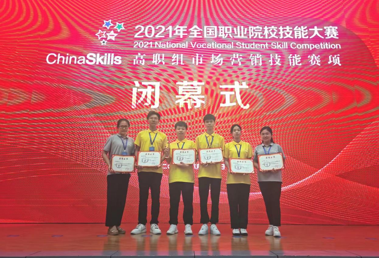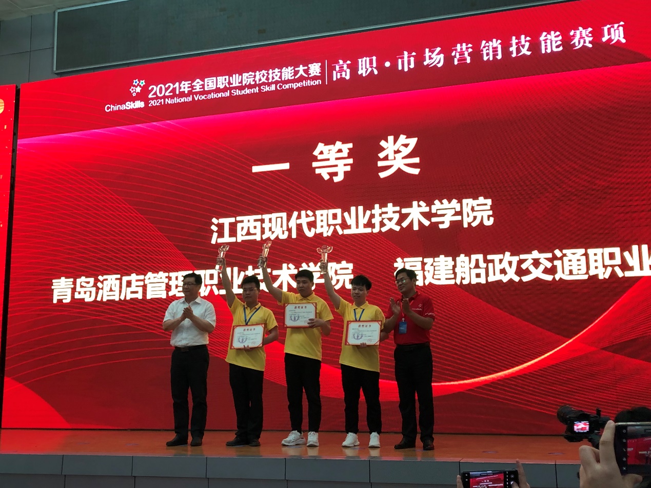 6月22日晚,2021年全国职业院校技能大赛高职组“市场营销技能”赛项在江西现代职业技术学院落下帷幕。经过两天的现场精彩角逐,我院经济与管理学院市场营销专业学生檀松景、杨荣钧、蔡静怡、陈伟鑫组成的团队获得全国市场营销技能大赛一等奖!指导教师陈华、何欣梅老师获得“优秀指导教师”奖。