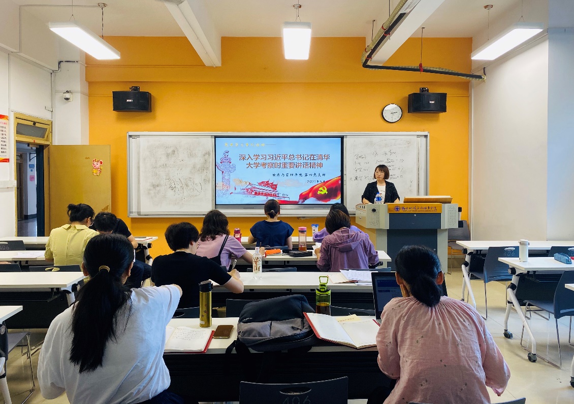 第四党支部全体党员集体观看了相关视频,谢霓同志传达了习近平总书记考察清华大学的有关情况以及习近平总书记重要讲话精神,就深入学习习近平总书记在清华大学考察时的重要讲话精神提出四点要求:第一,教师党员要发挥示范作用,带头学深悟透;第二,党支部要及时跟进,通过理论学习中心组会议、主题党日、主题班会等多种形式深入学习;第三,要把学习贯彻习近平总书记考察清华大学重要讲话精神与开展党史学习教育结合起来,不断指导实践、推动工作;第四,要积极营造浓厚学习氛围,层层推进,在广大师生中做好广泛宣传动员。