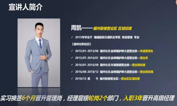 随后第二个环节,德邦福州大区负责人唐文建先生向毕业生发出诚挚的邀请。德邦的发展历程、企业文化,以及公司培养新人的方式,得到众多参会毕业生的认同。