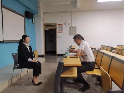 宣讲会结束后,进入最后的面试环节。同学们着正装,带上提前精心准备的简历,排队等候面试。当最后一名同学完成面试,此次招聘宣讲活动历时4个半小时,圆满结束。接下来双方就二轮面试采用线上方式达成了一致,德邦对我院毕业生积极认真的态度和出色的面试表现,给予了充分肯定。