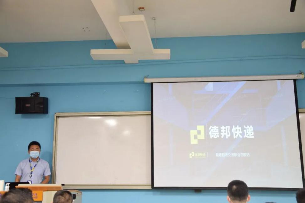 活动中,毕业于我校经济与管理学院15届物流管理专业的周凯学长作为优秀校友代表、主宣讲人员,为我院20届的学生详细介绍了德邦快递公司。