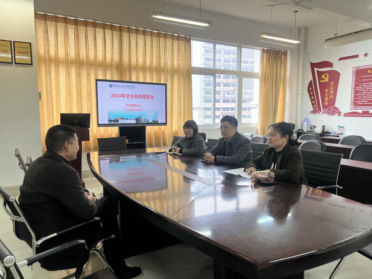 为深入贯彻教育部、省教育厅关于2024届高校毕业生就业工作会议精神,深入推进学院“访企拓岗促就业”专项行动,加强与优质企业的联系与合作,为毕业生开拓更广阔的就业岗位与市场资源,助力2024届毕业生高质量就业,经济与管理学院于3月14日携手福州空中邮车网络科技有限公司,共同举办了一场访企拓岗座谈会,学院院长房曰荣与空中邮车总经理刘轶华参与了此次活动。
