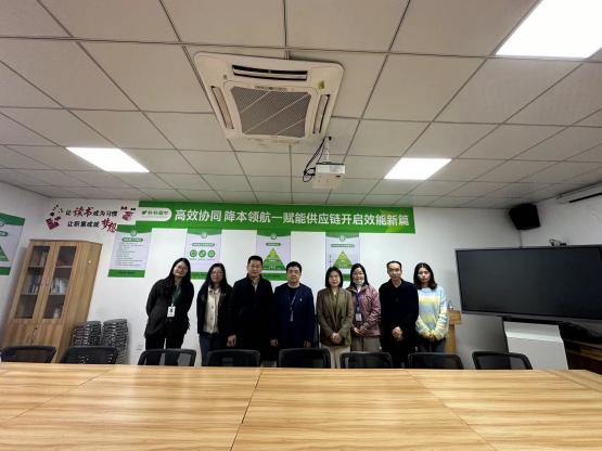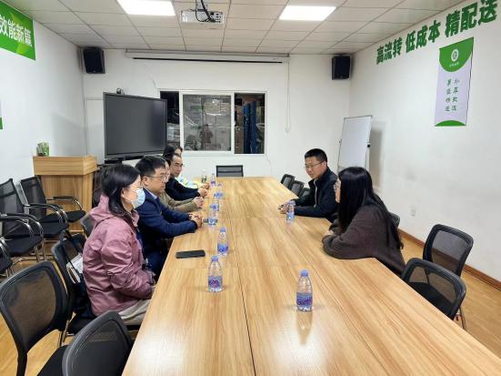 房曰荣一行首先来到佳沃果业走访调研。佳沃果业经理详细介绍了公司的主营业务、企业文化、发展前景、人才需求以及目标定位等。他表示,随着业务流程规范化及自动化,对人才素质的要求显著提高了;同时,企业内部也非常缺少年轻干部,希望能进一步加大校企合作力度,精准对接人才需求。房曰荣表示,经济与管理学院与佳沃果业具有良好的合作基础,希望双方进一步深化校企合作,以提升人才高质量就业水平为目标,加强沟通交流,深入推进校企双方的学科链、产业链、人才链深度融合,拓宽共建双赢之路。佳沃果业的实习生畅谈了入职工作的感受体会,他们在企业实习除了丰富自身的实践经验,对物流行业的前沿技术也有了更加充分的了解。会后,房曰荣一行参观了佳沃果业的高温仓及低温仓。