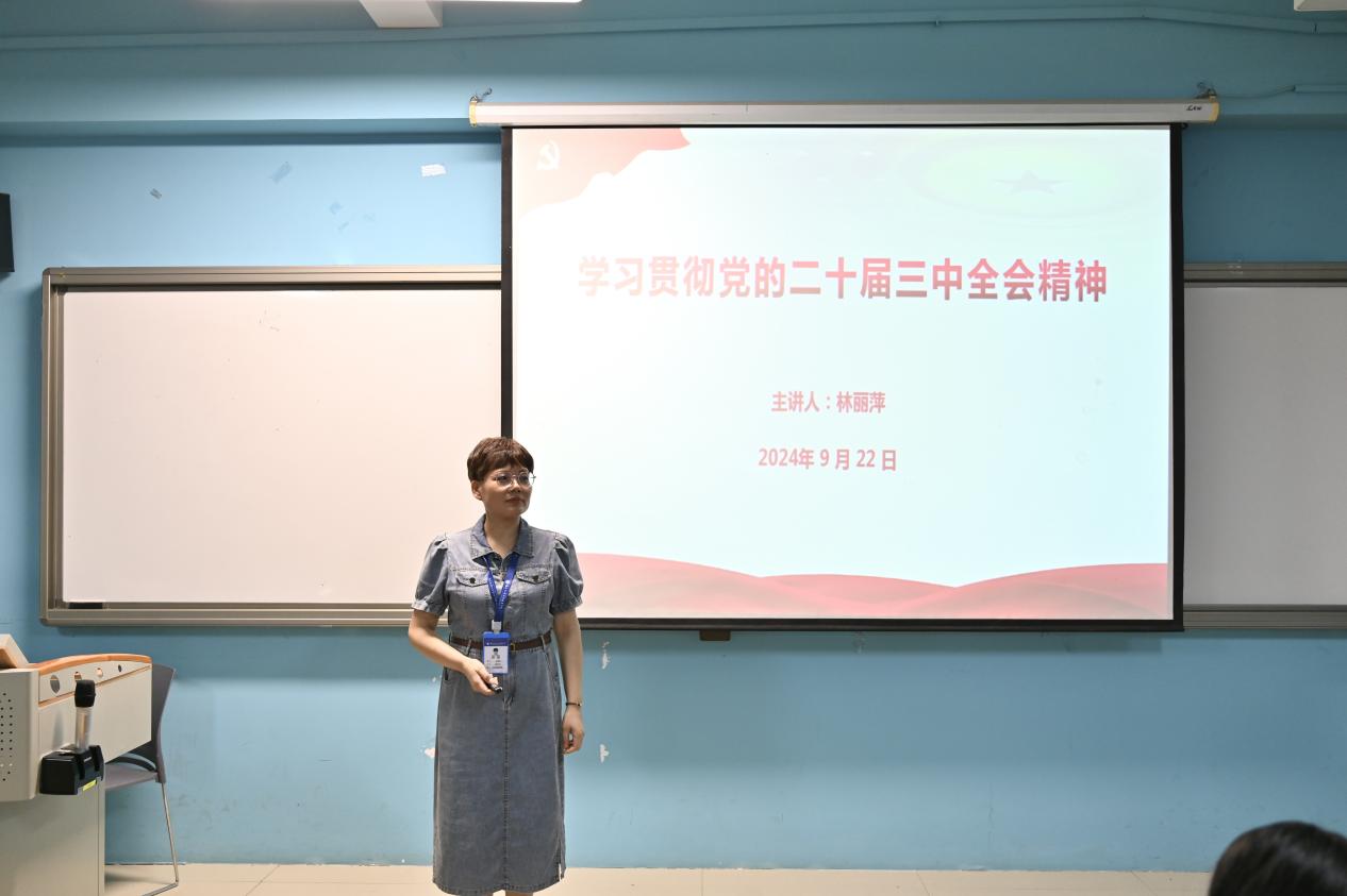 为引导青年学生深入理解党的二十届三中全会精神,将个人成长与国家发展紧密结合,用青春力量为时代添彩。9月22日,在庆祝中华人民共和国成立75周年之际,经济与管理学院党总支副书记林丽萍向24电商(3+2)4班和24现代物流管理(3+2)2班学生宣讲党的二十届三中全会精神。