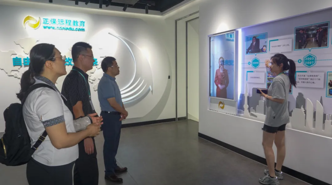 在危显军总监的陪同下,房曰荣院长一行人参观了厦门网中网软件有限公司,深入了解公司的发展历程、文化特色及产品研发成就。通过智慧教室体验了教学场所的交互式、智能化和便捷性,并在高清录课室中,分别从场地布景、拍摄设备、录制流程等方面,进一步了解了高质量课程建设的专业技术,同时感受了电商直播现场的紧密协作和高效运转。