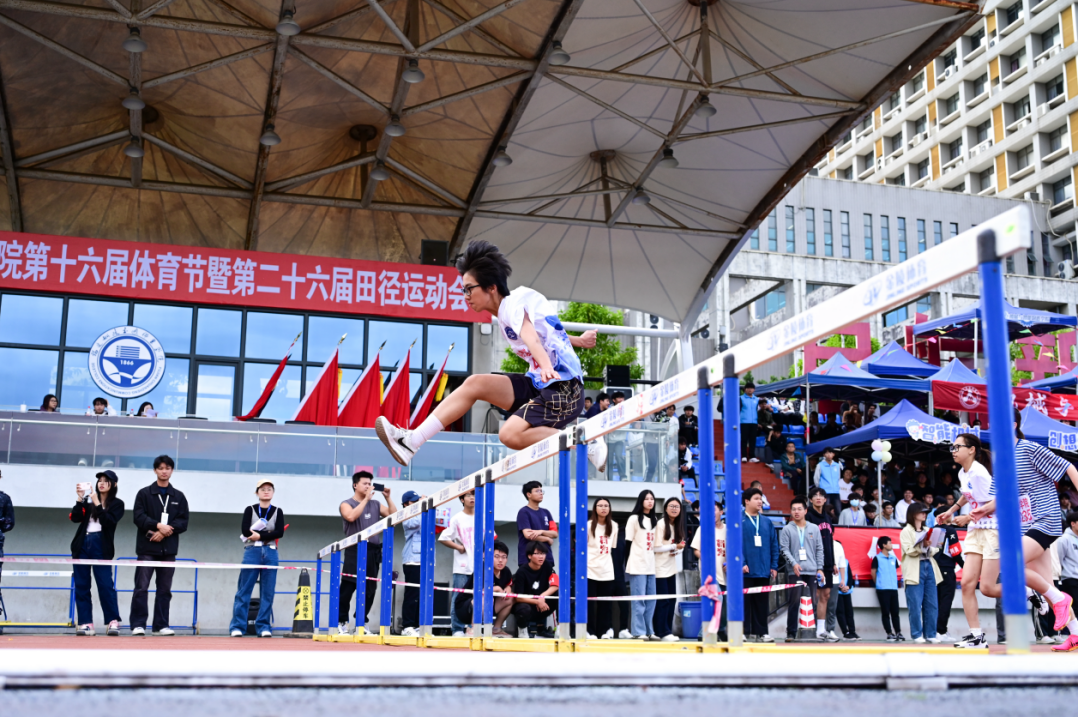 在田赛赛场上,我院运动员们以力量、技巧与飞跃诠释着体育之美。他们或手持铅球,凝聚全身之力投掷;或立于跳高杆前,轻盈起跳,身姿矫健;亦或在跳远沙坑前,助跑有力,腾空飞跃。