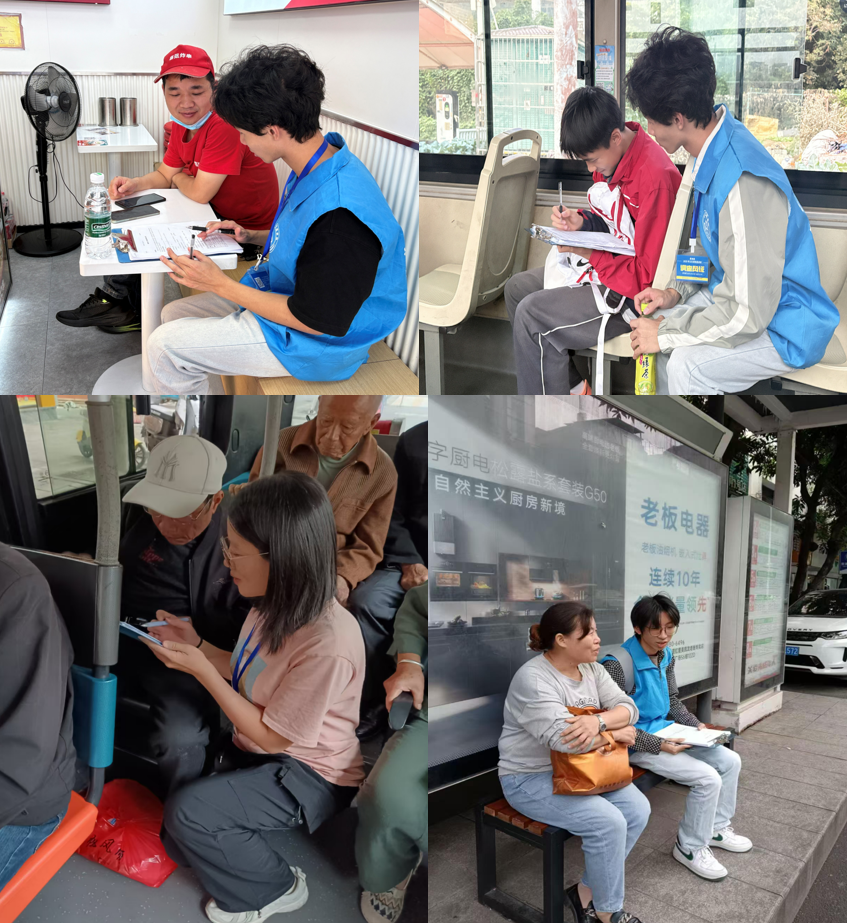 调查团队采用“点面结合、动静相辅”的科学方法,系统推进数据采集工作。首日,团队深入龙贤、俊贤、西关等18个街道社区,面向社区居民开展问卷调查,重点了解日常出行的整体满意度与共性需求。随后两日,团队转战府头门、永辉超市、阳光城及火车站等核心公交枢纽,在高峰与平峰时段分散布点,确保样本覆盖不同线路、不同出行目的的乘客。同时,团队分组进行跟车调查,实地记录车辆运行状况、车厢环境及乘客实时反馈,从而在静态问卷之外,补充了动态的、场景化的观察数据。通过多层次、立体化的调查方式,有效保障了数据来源的广泛性与结构代表性。