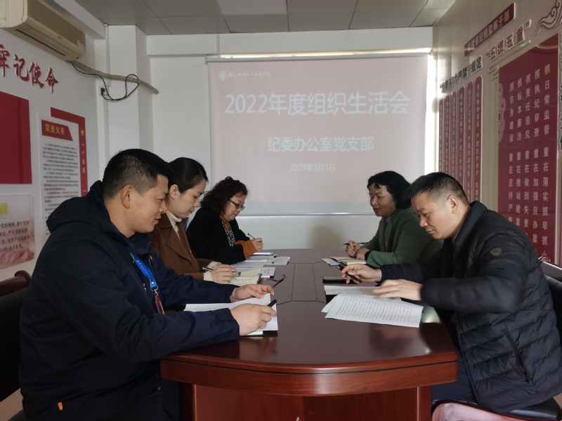 2023年3月1日上午,纪委办党支部召开2022年度组织生活会。学校党委委员、纪委书记张辉同志以普通党员身份参加了所在党支部的组织生活会。会议由纪委办党支部书记余土水主持。