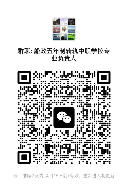 请各合作中职学校负责机房安装的技术老师4月11日前加入微信群“船政五年制转轨考核技术群”(图一),各合作中职学校专业负责人4月11日前加入微信群“船政五年制转轨中职学校专业负责人群”(图二)。