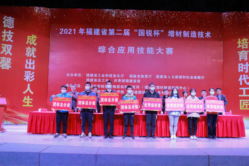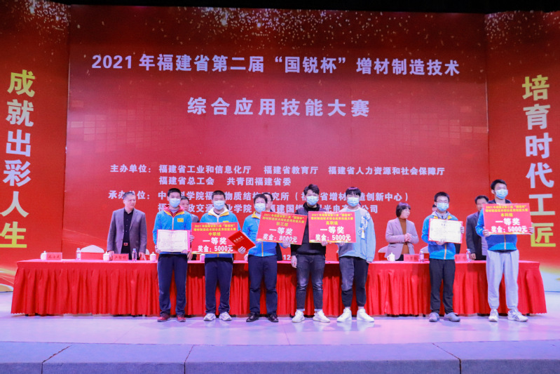 省工信厅副厅长郭学军、中科院海西研究院副院长林文雄、福建省总工会劳动和经技工作部部长孙勤、福建省教育厅职业教育与成人教育处一级调研员刘会勇、福建省人社厅职业能力建设处二级调研员 陈育红、福建省工信厅科技处处长卢哲明、福建省增材制造创新中心副主任张震奇、福建工程学院教授黄卫东和福建船政交通职业学院院长陈锦辉等联办单位领导出席闭幕式并为获奖选手和单位颁奖。