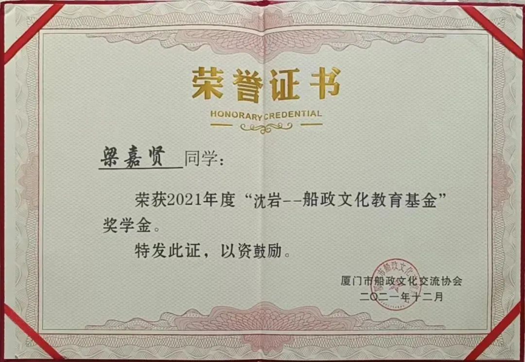 1、2020-2021年度,“沈岩——船政文化教育基金”奖学金;