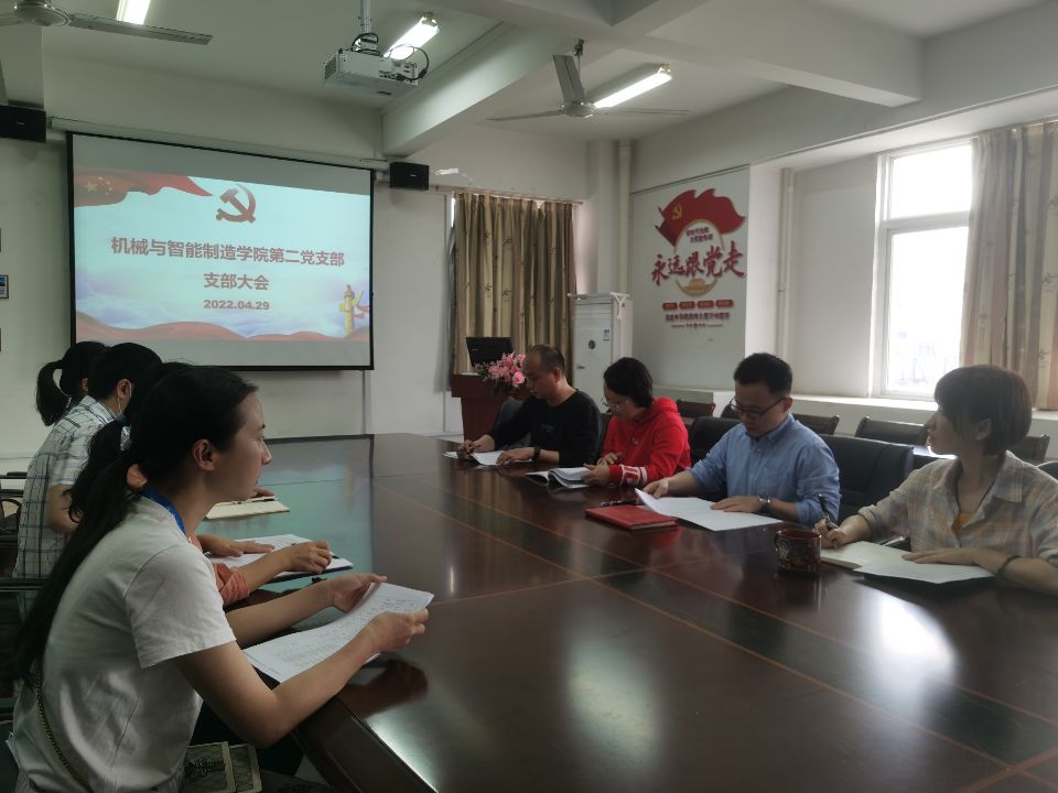 2022年4月29日,机械与智能制造学院第二党支部召开支部大会,组织学习《习近平在北京冬奥会冬残奥会总结表彰大会上的讲话》、《尹力在<求是>杂志发表署名文章:奋力谱写全面建设社会主义现代化国家福建篇章》、《尹力主持召开省委理论学习中心组学习会:深入学习贯彻党的十九届六中全会精神集中学习研讨<习近平书信选集>第一卷》、《全省宗教工作会议召开》、《林和平:探索区域智慧高等教育发展新路径》等文件精神。