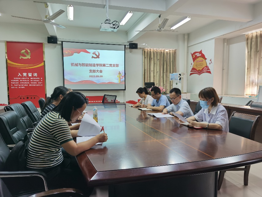 2022年9月28日,机械与智能制造学院第二党支部召开支部学习大会,学习《习近平给北京师范大学“优师计划”师范生的回信》、《中共福建省委宣传部 中共福建省委文明办转发<中共中央宣传部 中央文明办关于深入学习宣传贯彻习近平总书记给“中国好人”李培生胡晓春重要回信精神的通知>的通知》、《尹力在纪念福建省苏维埃政府成立90周年大会上的讲话》等文件精神。