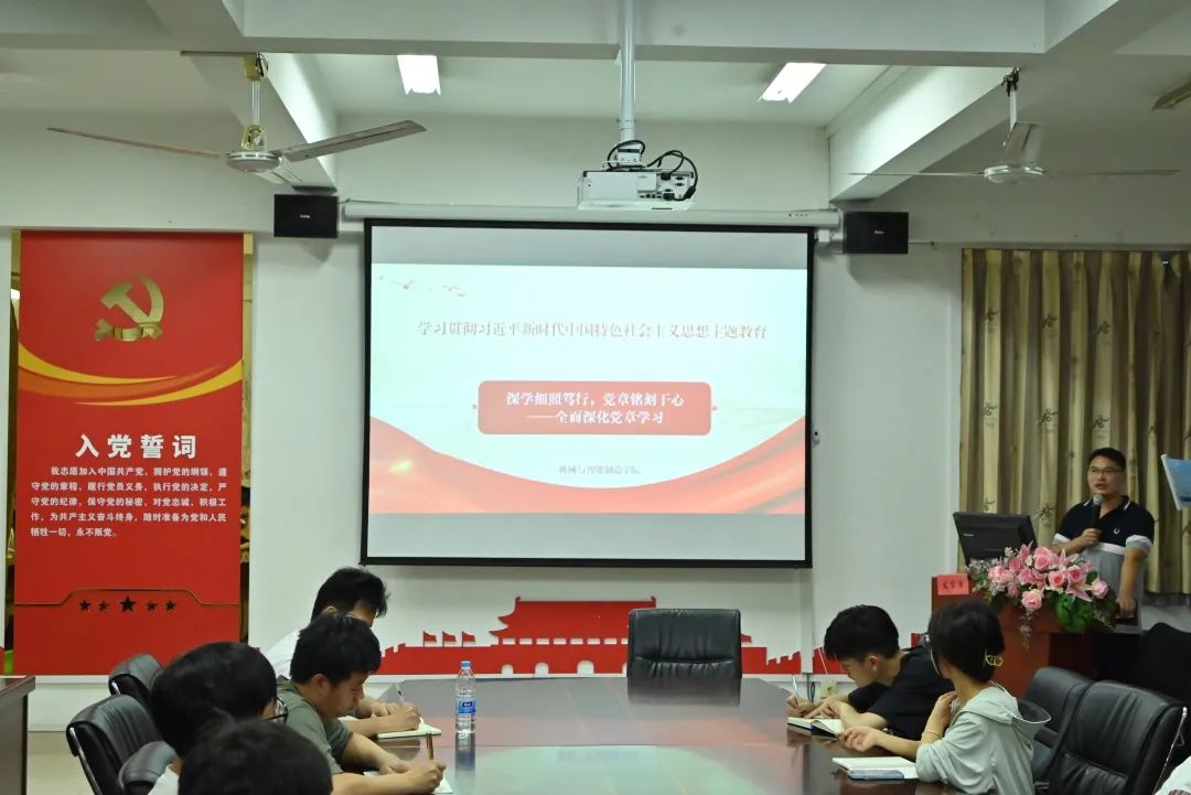 为深入开展学习贯彻习近平新时代中国特色社会主义思想主题教育,牢牢把握“学思想、强党性、重实践、建新功”总要求,5月22日晚,根据我院主题教育学习计划要求,我院组织全体学生预备党员于福道园26号楼305会议室开展学习贯彻习近平新时代中国特色社会主义思想主题教育专题党课,我院党总支副书记肖秀林以《深学细照笃行,党章铭刻于心——全面深化党章学习》为题讲授主题教育专题党课。