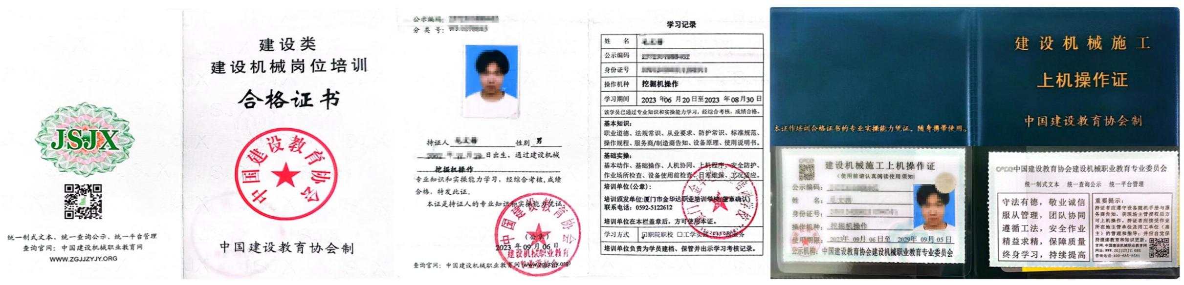 学员们通过系统的理论学习和实践操作,反复的练习和模拟训练,逐渐熟悉了装载机、挖掘机的控制和操作流程,掌握了装载机、挖掘机的基本操作技巧和安全注意事项。经过严格的考核,成功通过了培训考核并获得了建设机械岗位培训合格证。
