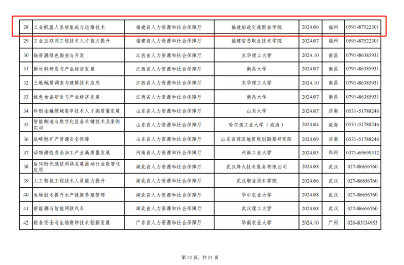 近日,人力资源和社会保障部发布“人力资源社会保障部办公厅关于印发专业技术人才知识更新工程2024年高级研修项目计划的通知”(人社厅函〔2024〕34号),机械与智能制造学院组织申报的《工业机器人系统集成与运维技术》项目成功入选。