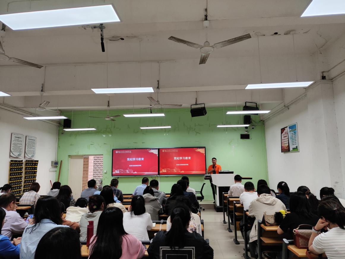 2024年5月15日下午,机械与智能制造学院于2号楼1-2召开党纪教育学习会议,会议由党总支副书记肖秀林主持,机械与智能制造学院全体教职工参加会议。
