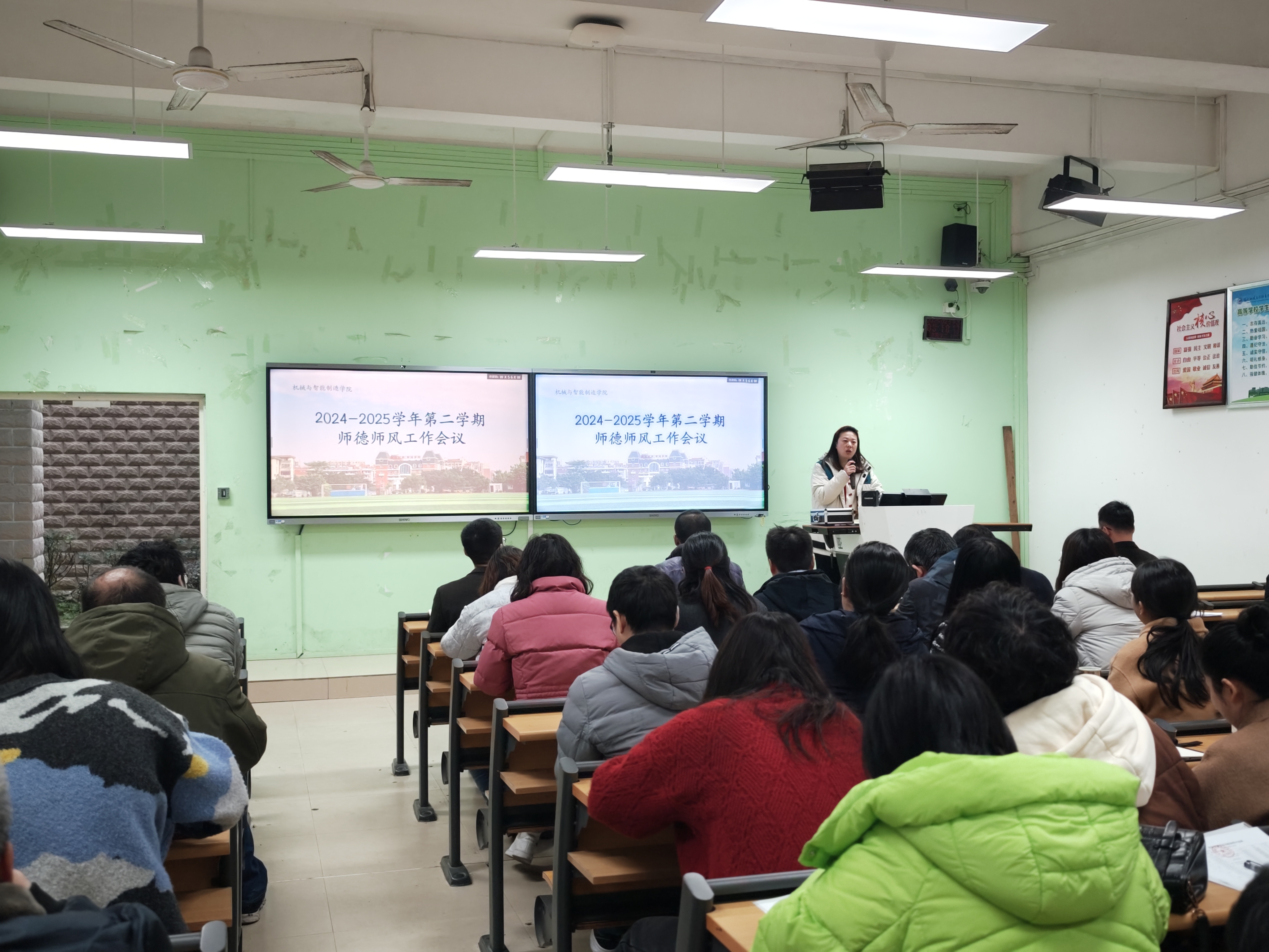 为深入贯彻习近平总书记关于师德师风建设的重要指示,落实党的二十届三中全会精神, 2月21日,机械与智能制造学院在福道园2#1-2召开师德师风工作会议,学院党政领导班子及全体教职工出席会议,将师德师风建设摆在首要位置,全力打造高素质教师队伍。