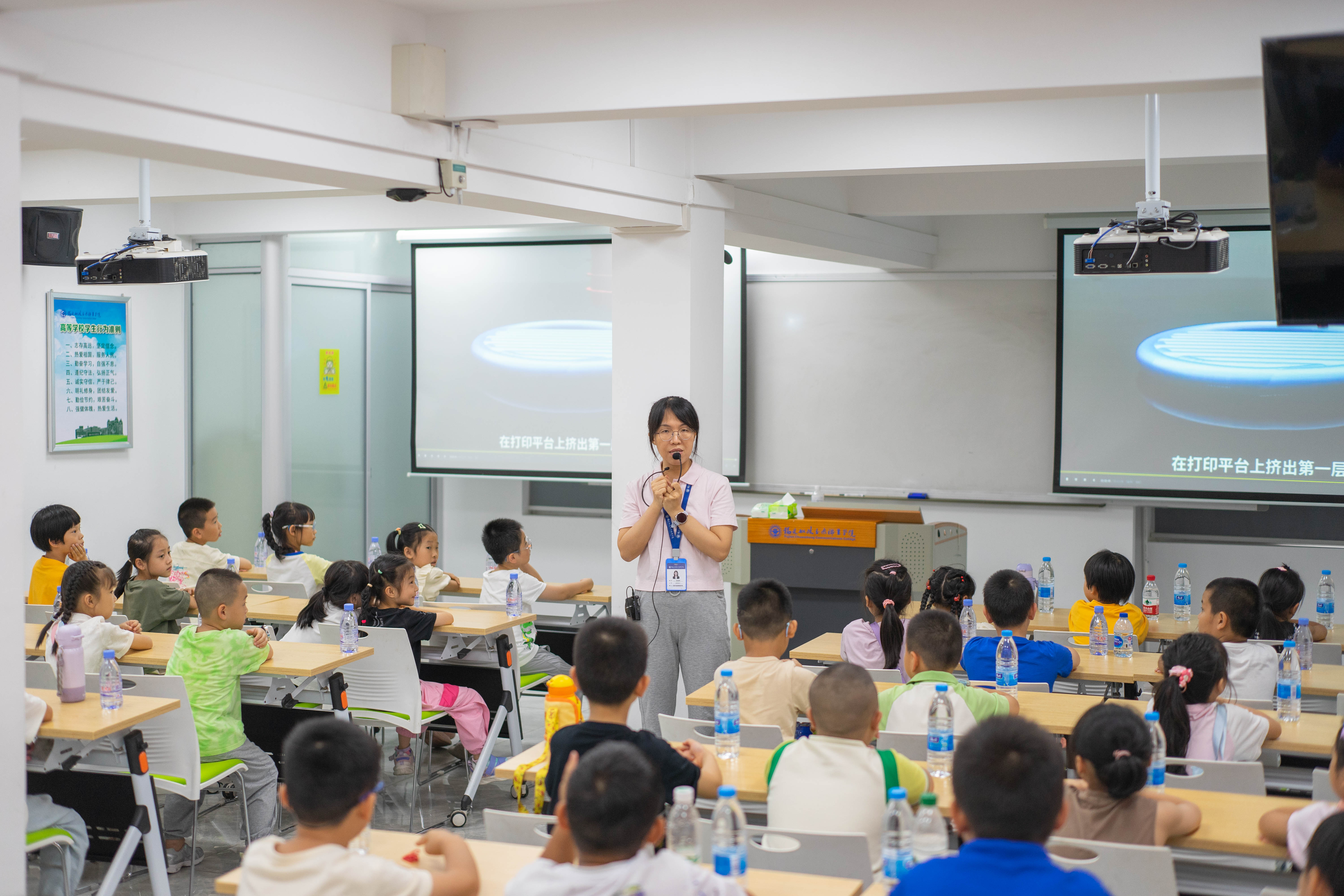 在增材制造科普基地展厅,程艳老师向大家展示并讲解了船模、航模、古建筑模型和人体仿生骨骼的3D制作工艺流程,点燃孩子们对知识的热爱,让他们勇于在实践中探索科学的奥秘。胡星晔老师带来了《3D产品设计与制作》科普讲座,介绍3D产品如何从图纸到成品的过程和3D打印技术在生活中的实际应用,揭示科学技术为我们的生活所带来的便利,让孩子们切实感受到科技改变生活、创新赢得未来的伟大力量。