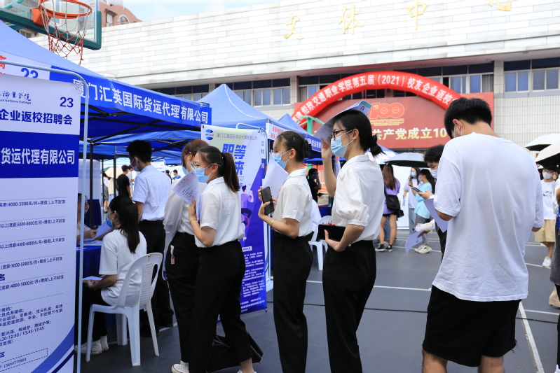 2021年8月21日上午,学院第五届(2021年)校友企业返校招聘会于北区文体中心前顺利举行。本次招聘会共有59家校友企业参会,提供约852个就业岗位,行业覆盖领域多,涉及专业广,发展前景佳,进一步推进毕业生高质量就业。