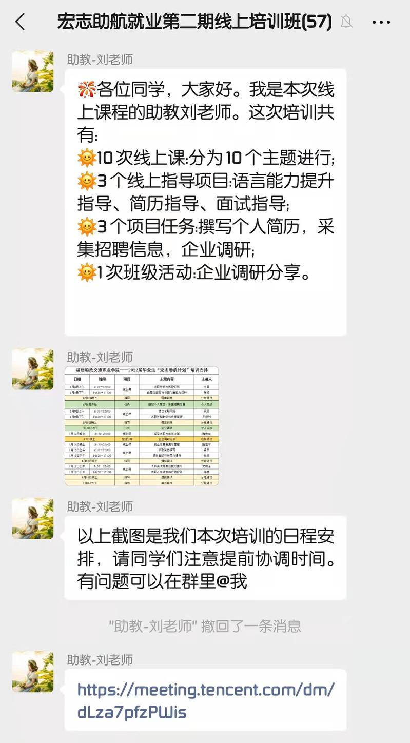 此次培训采用线上线下相结合的方式,以体验式教学为主,与实践相结合,对150名毕业生开展优势识别、求职准备、求职信息获取、心态调节等10个主题、总计40个学时的就业能力专题培训,覆盖大学生从求职准备到签约就业全过程,学校还将优质的就业资源与参训学员共享,帮助参训学员高质量就业。