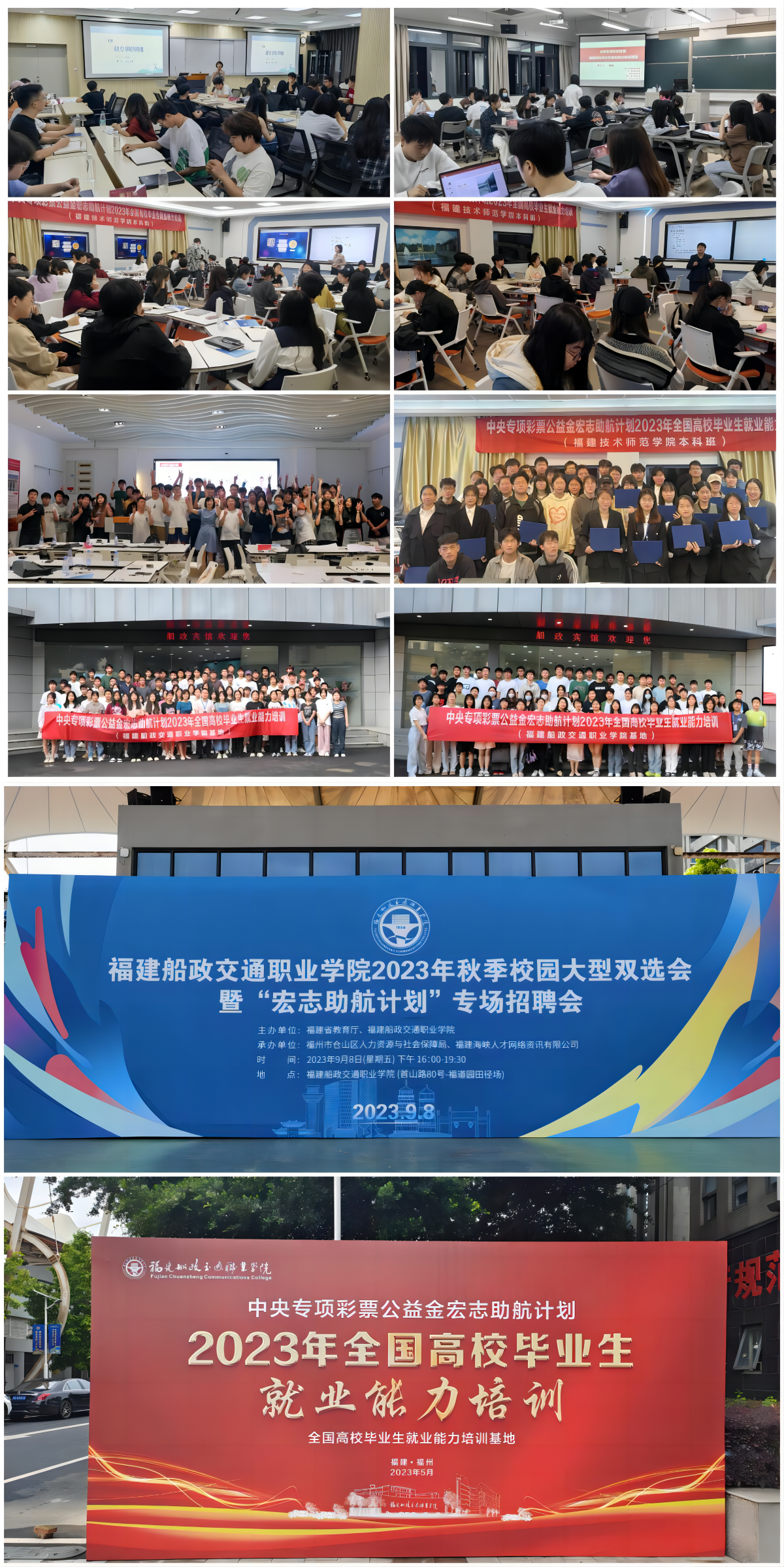 为深入学习贯彻党的二十大精神,全面落实党中央、国务院对高校毕业生就业创业工作的决策部署,帮助毕业生提升综合素质和就业能力,福建船政交通职业学院基地(以下简称“基地”)于2023年5月-11月为来自我校及福建幼儿师范高等专科学校、福建师范大学协和学院、福建技术师范学院等4所高校的300名学生开展宏志助航计划就业能力专项培训。
