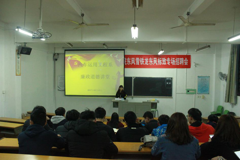 汽车运用工程系于2017年03月7日晚上在汽二阶举办“喜迎校庆150周年廉政道德讲堂”,本次活动由系部沈晓家老师为我们主讲。为加强我系廉政文化建设,深入推进汽车运用工程系党风廉政建设和反腐败斗争,提升廉政建设水平,营造清正廉洁、公正和谐、健康向上的育人环境。增强学生对学习知识的积极性,促进学生找出自己的不足,学习党员应有的责任感和使命感,从而加强汽车运用工程系学生的廉政意识和廉政修养,从而摆正自己的位置,明确自己的责任和义务,以一名优秀党员的标准要求自己,从而进一步为国家贡献自己的力量。在交院三年以来的成长,与他们分享了船政有趣的事情,对同学们所迷惑的事情进行了解答。