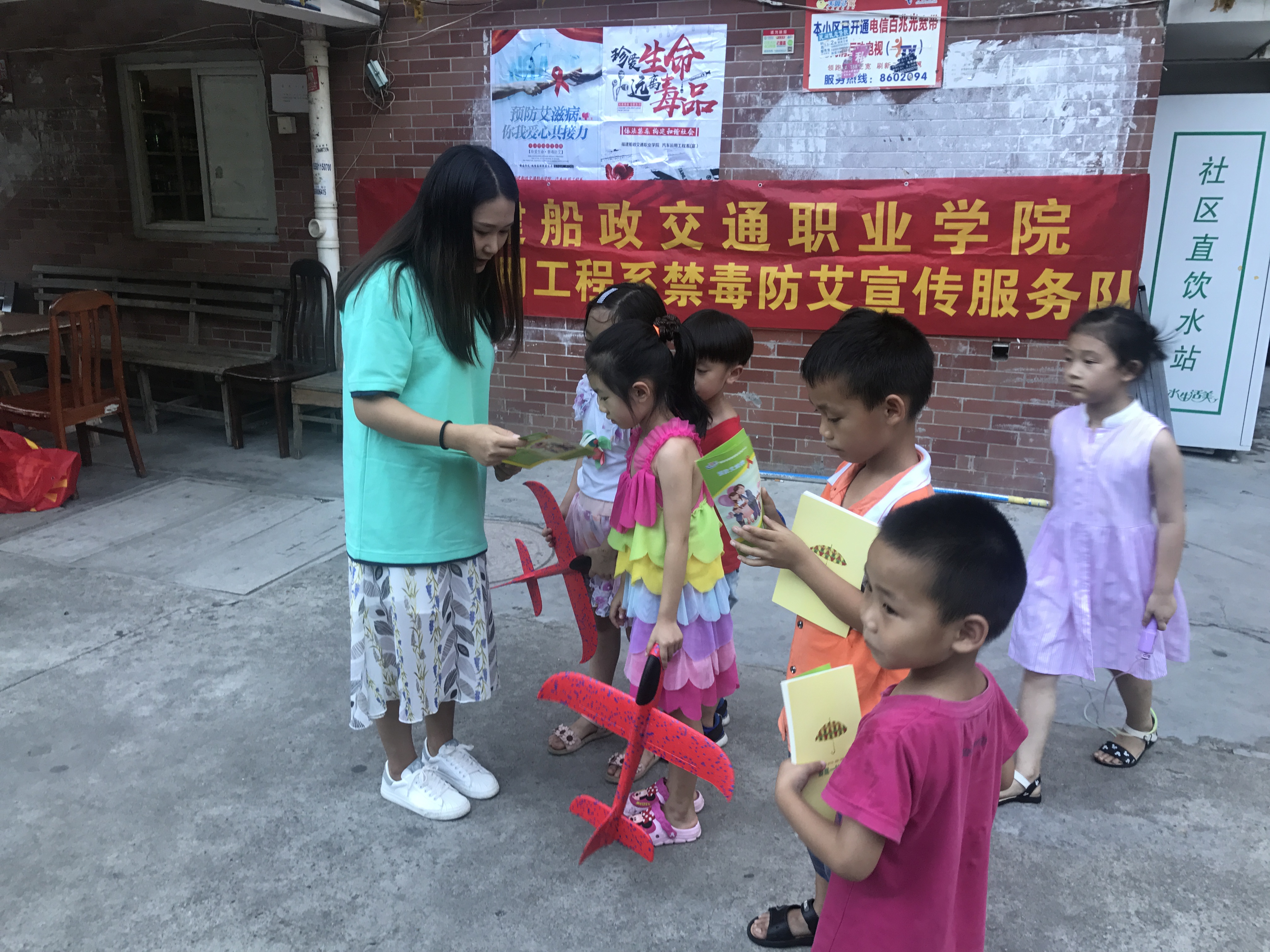 7月10日,我系宣传队在延平区锦绣佳园小区开展了禁毒防艾的宣传,把预防艾滋、抵制毒品的常识传递到小朋友的认知世界中去,同时也提高了当地居民对禁毒防艾的认识。
