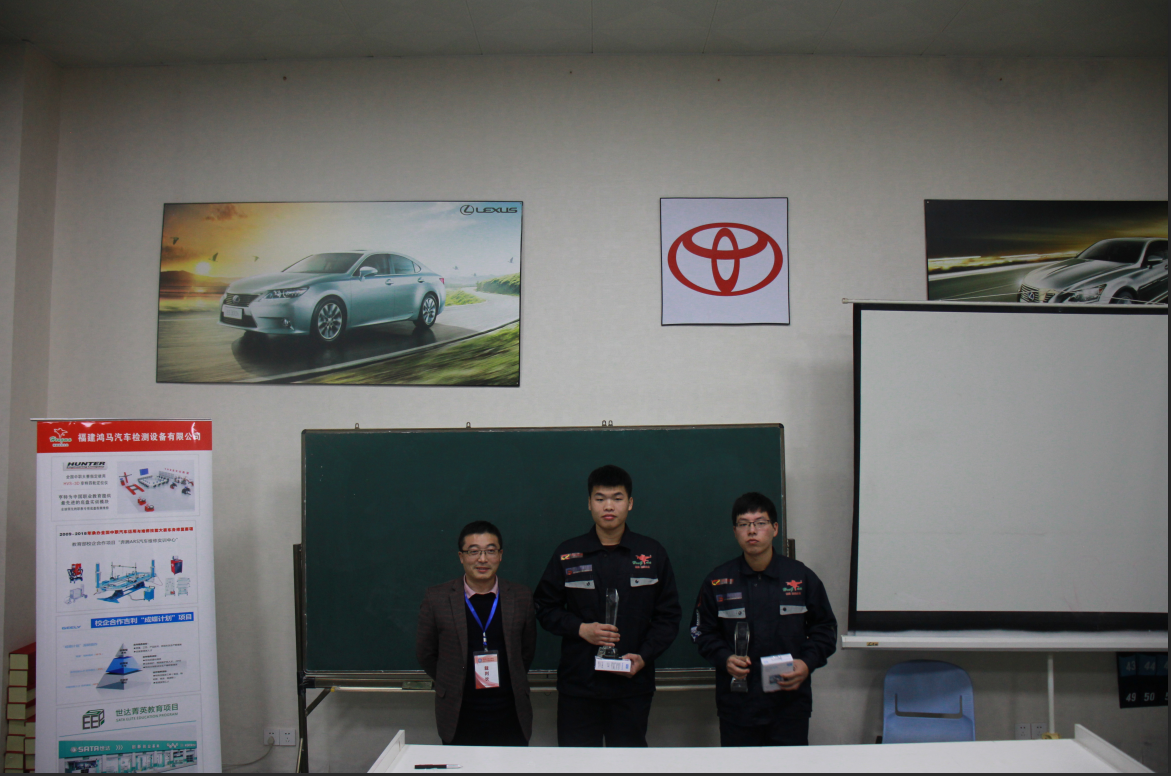 我校参赛队选手17汽车检测与维修技术专业学生林元宁、杨鑫煌(指导教师李智强、邓辉明)发挥出色,在激烈的角逐中,从13个参赛队中脱颖而出,获得第一名好成绩。为我校获得荣誉,增光添彩!