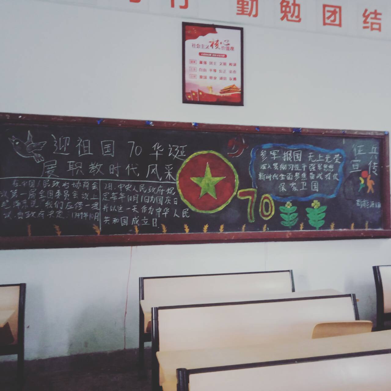 我系通过开展以“迎中华人民共和国成立七十周年 展职教时代风采”为主题的黑板报评选活动,对职教周活动进行多角度、深层次的全面宣传。