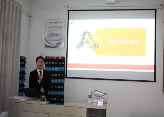 第一场企业家进校园讲座: 2018年10月17日下午北区26号楼602教室,由2002届汽车运用与工程机械专业优秀校友,福建宏文汽车集团董事长、福建吉诺阳光新能有限公司董事长李立洪进行分享,他讲座的主题是:“一个汽车人的16年”。讲座分享了他进入汽车行业至今16年有余,从一线销售人员做起,最终创立自己的汽车经销商集团,一步步坚实的走来,一步步的出人意料,过程中承受了无数的选择压力,以及如何应对,李立洪表示世事多变,唯感恩之心不变,方能决胜未来!