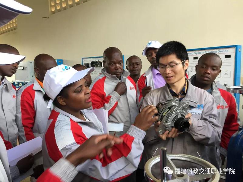为帮助肯尼亚政府对本国大专院校的汽车维修专业进行升级建设,福建船政交通职业学院从2018年开始为肯尼亚教育部制定汽修专业师资培训方案,开发《汽车使用与维护》《汽车发动机构造与维修》《汽车电气系统检修》等8门汽修专业核心课程英文版教材及其课程资源,并于2018年6月至12月先后派出5名优秀教师赴肯尼亚,为肯尼亚教育部从全国13所院校选拔的20名教师开展专业培训和教学指导。根据肯尼亚教育部大中专升级改造项目要求,汽车运用工程系老师运用自身丰富的教学经验和娴熟的实践技能,为肯尼亚教师量身定制培训方案,培训效果获得肯尼亚参训教师和教育部的一致好评!