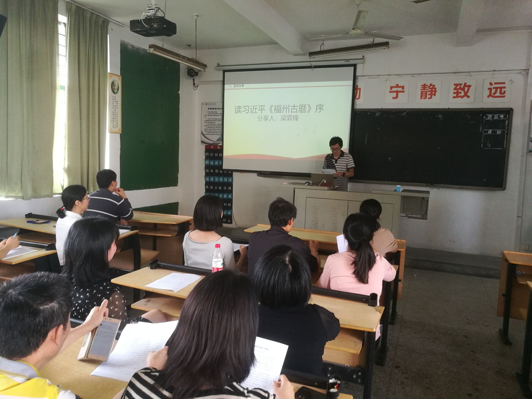 研讨活动中,梁霖锋老师带头学习了习近平《<福州古厝>序》。《〈福州古厝〉序》是2002年时任福建省省长的习近平为福建人民出版社《福州古厝》一书撰写的序言。习近平总书记在该文中以深邃的思考,生动的笔触,深刻揭示了戚公祠、马尾昭忠祠、林文忠祠、开元寺等古建筑的丰富文化内涵,作出了保护好古建筑、保护好文物就是保存历史、保存城市文脉的重要论断,阐明了经济发展和生态、人文环境保护同等重要的关系。序里写道:福州派江吻海,山水相依,城中有山,山中有城,是一座天然环境优越、十分美丽的国家历史文化名城。福州的古建筑是构成历史文化名城的要素之一。