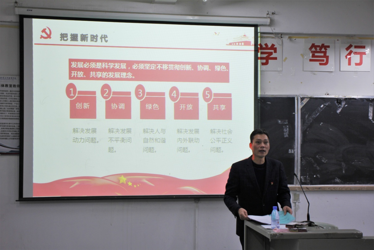 蔡华锦书记以“读懂新时代 、把握新时代 、实现新时代” 深入学习贯彻习近平新时代中国特色社会主义思想为题,讲述了中国特色社会主义进入新时代,在中华人民共和国发展史上、中华民族发展史上具有重大意义,在世界社会主义发展史上、人类社会发展史上也具有重大意义。“中国特色社会主义进入了新时代,这是我国发展新的历史方位”。党的十九大对我国发展所处历史方位作出新的重大政治论断,具有重大现实意义和深远历史意义。我们要深刻领会“新时代”的丰富内涵,准确把握我国发展新的历史方位,深入开展“不忘初心、牢记使命”主题教育,用习近平新时代中国特色社会主义思想武装头脑,更好地肩负起新时代的历史使命。实现新时代强调的是观念的变革,用观念的变革指导实践。实现新时代最重要的因素是创新,我国经济由高速增长阶段转向高质量发展阶段,创新起到巨大推动作用。站在新的历史起点,我们将坚持新发展理念,继续实施创新驱动发展战略,着力培育和壮大新动能,不断推动转方式、调结构、增动力,推动经济高质量发展,为世界经济增长带来新的更多机遇,为推动建设开放型世界经济、构建人类命运共同体作出积极贡献。