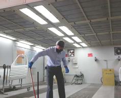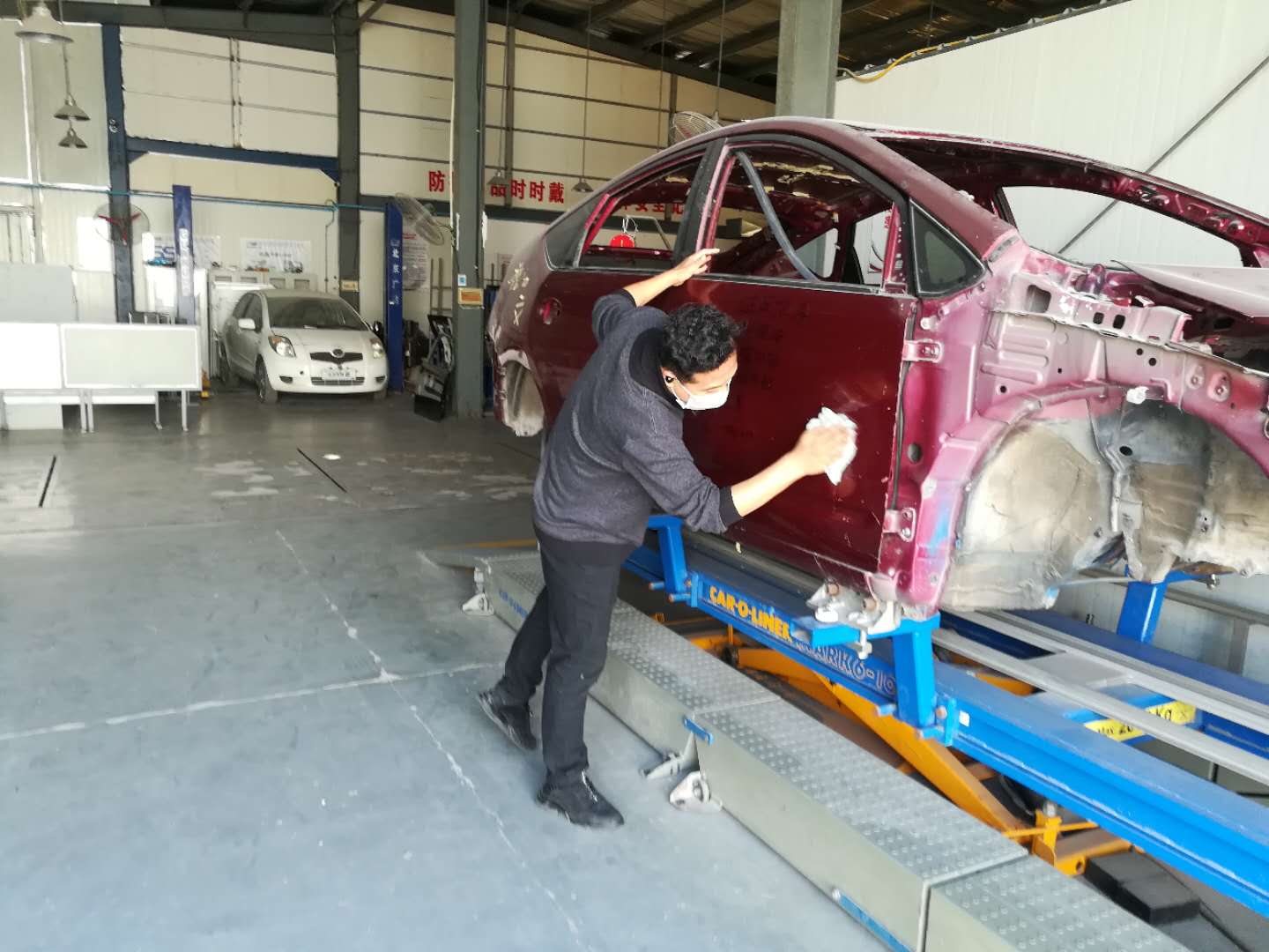 34亩地的钣喷实训室,场地大、设备多、周围又有建设工地和车流繁忙的主干道。陈星老师和叶振球老师花了整整一个早上才把这里恢复到上课状态。